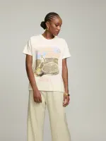 T-shirt confeccionada em malha 100% algodão, com silk exclusivo frontal. Peça com shape regular e manga curta. Detalhe de gola arredondada e rib canelada.