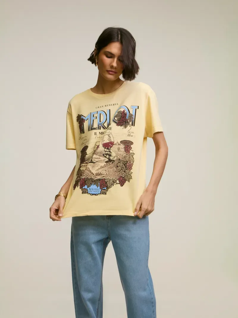 T-shirt confeccionada em malha 100% algodão, com silk exclusivo frontal. Peça com shape regular e manga curta. Detalhe de gola arredondada e rib canelada.