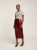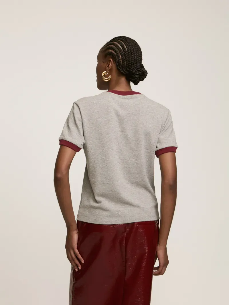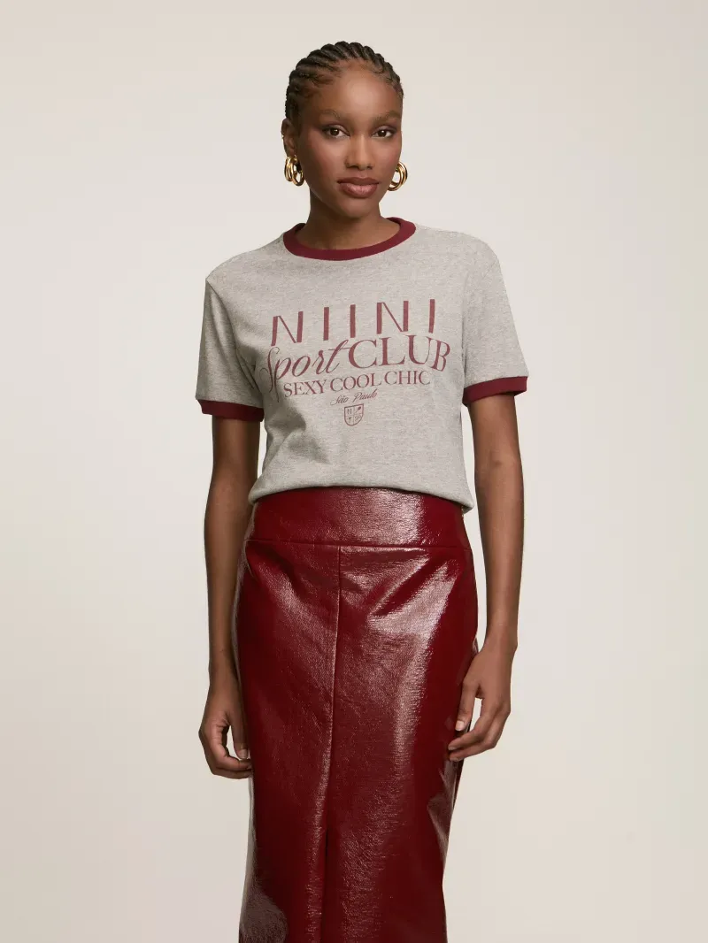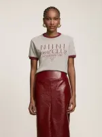 T-Shirt baby look confeccionada em malha 100% algodão, com silk exclusivo frontal. Possui modelagem levemente ajustada ao corpo. Detalhe de gola arredondada e punho canelados.