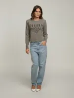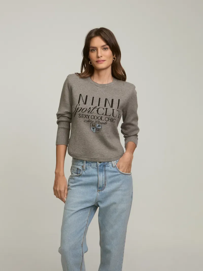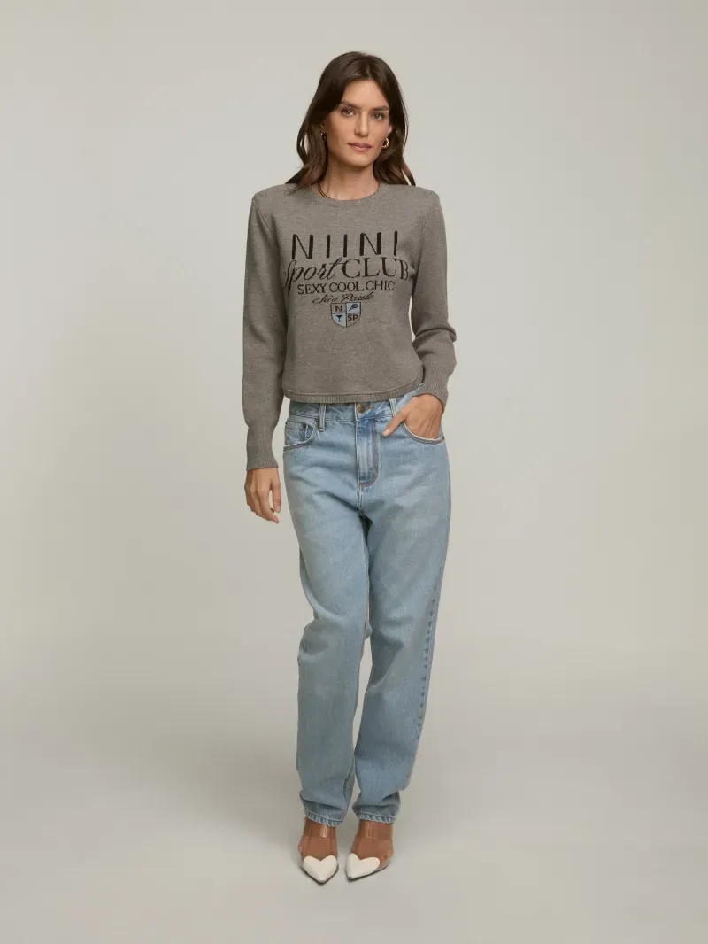 Blusa confeccionada em tricot com estampa NIINI Sport Club. Modelagem levemente ampla e cropped. Possui ombreiras e punho canelado.
