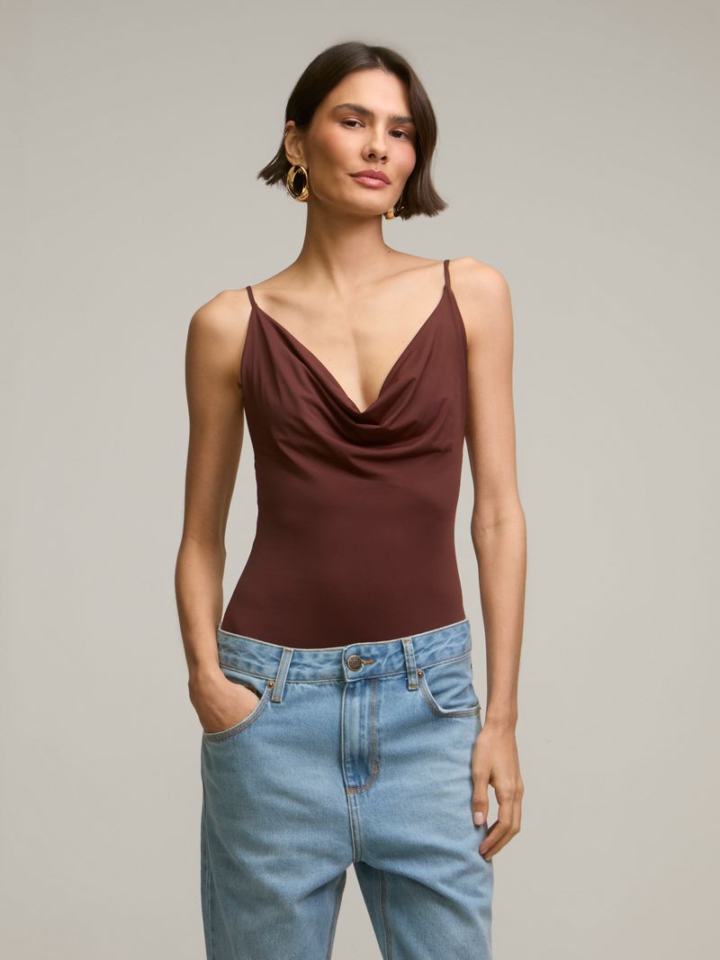 Body confeccionado inteiro em fluity. Possui decote frontal degagê e reto nas cotas. Fechamento entrepernas por botões.
