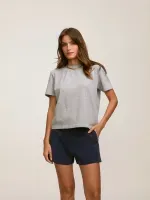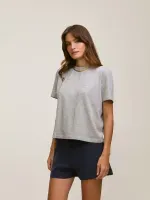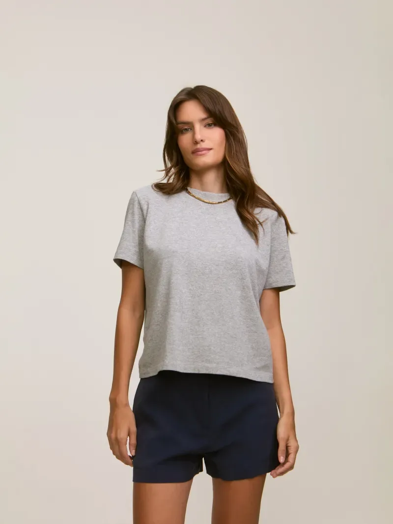 Camiseta confeccionada em tecido 100% algodão. Modelagem solta de manga curta.