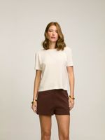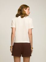 Camiseta confeccionada em tecido 100% algodão. Modelagem solta de manga curta.