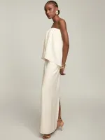Corset confeccionado em crepe patou, inteiro duplo. Possui barbatanas e fechamento posterior nas costas. Sobreposição balone com parte superior de pregas e parte posterior alongada.