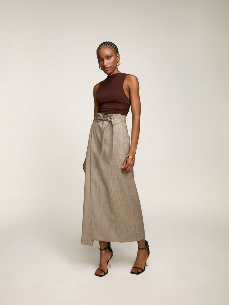 Saia confeccionada em tecido 100% lã. Modelagem longuete, transpassada e com cós clochard. Possui bolsos laterais e lapela nas costas. Fechamento frontal por botão, colchetes e zíper nas costas. Acompanha faixa para amarração.