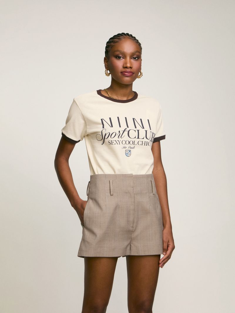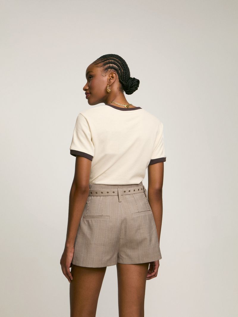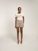 Short confeccionado em tecido 100% lã. Modelagem clochard e cintura alta com shape levemente evasê. Possui bolsos laterais e lapela nas costas. Fechamento frontal por botão, colchetes e zíper.