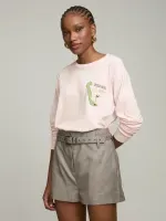 T-Shirt confeccionada em malha 100% algodão. Possui modelagem oversized com silk exclusivo na frente e nas costas. Detalhe de gola e punhos canelados.