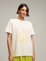 Tshirt confeccionada em malha 100% algodão, com silk exclusivo frontal. Peça com shape regular e manga curta. Detalhe de gola arredondada e rib canelada.